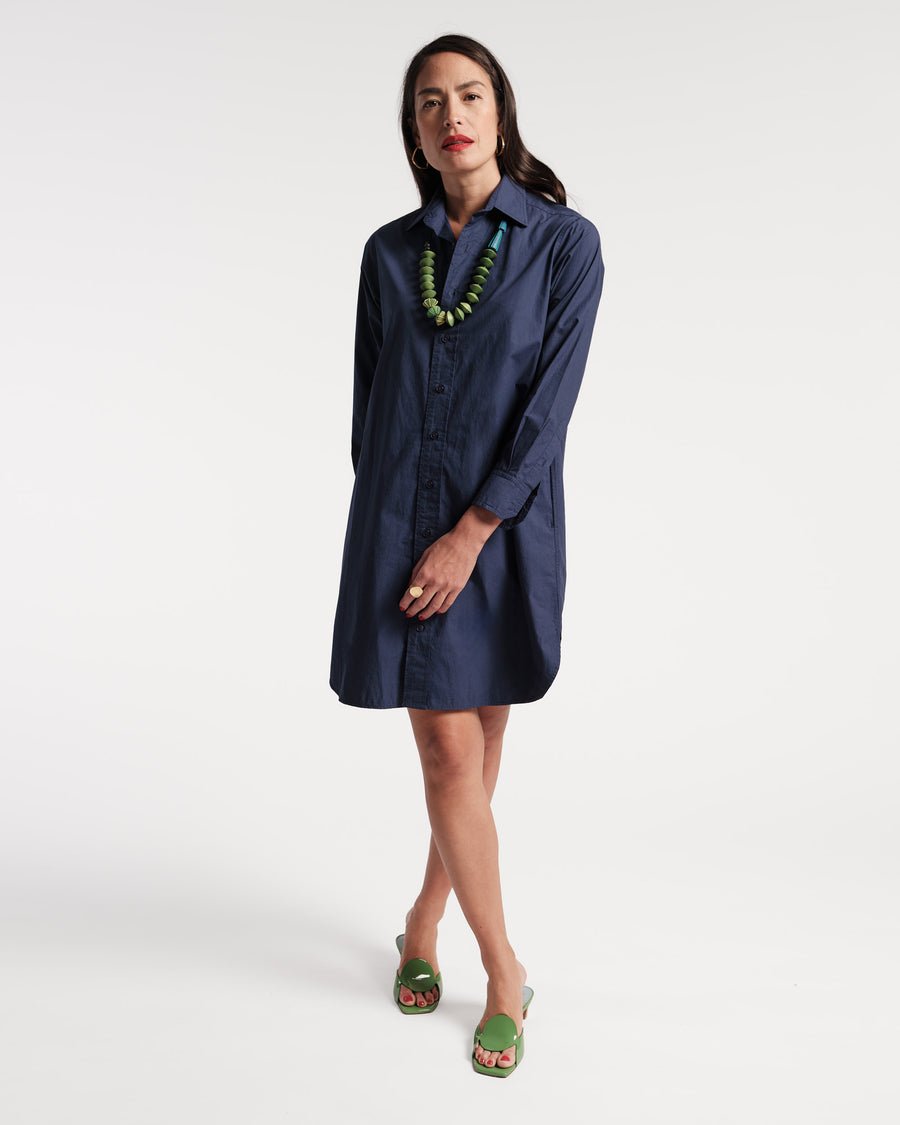 The Perfect Shirtdress is a longer, belted version of that timeless button down that never leaves our wardrobes. Fashioned at the beach or office, tied in a bow or left loose – this dress always delivers. With long sleeves, cornered hems, and a classic shirt collar. The fit is adjustable with removable belt, button down front and wrists, and pockets.